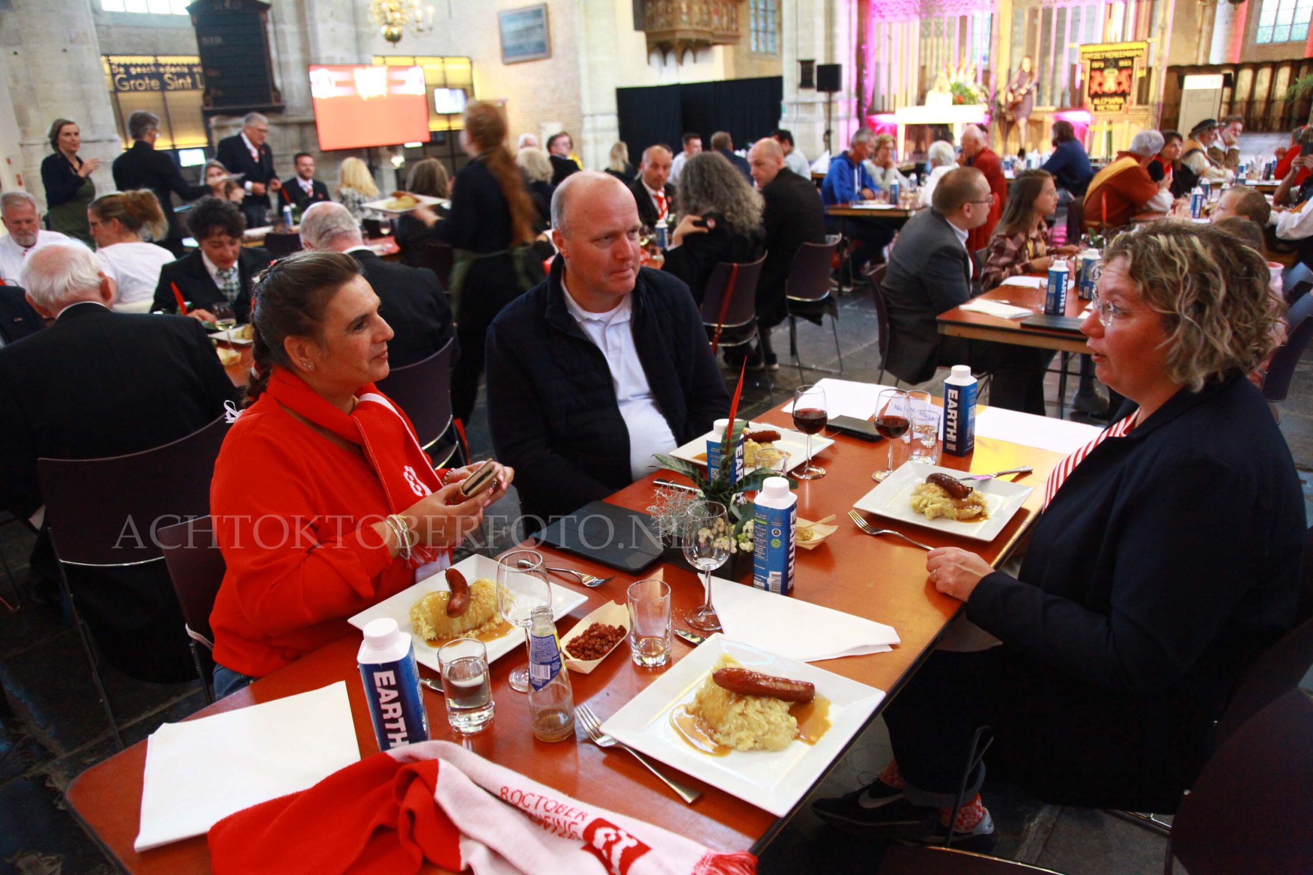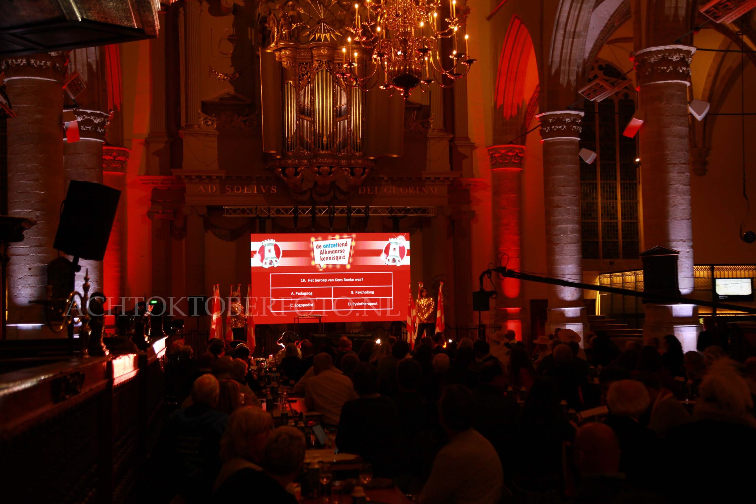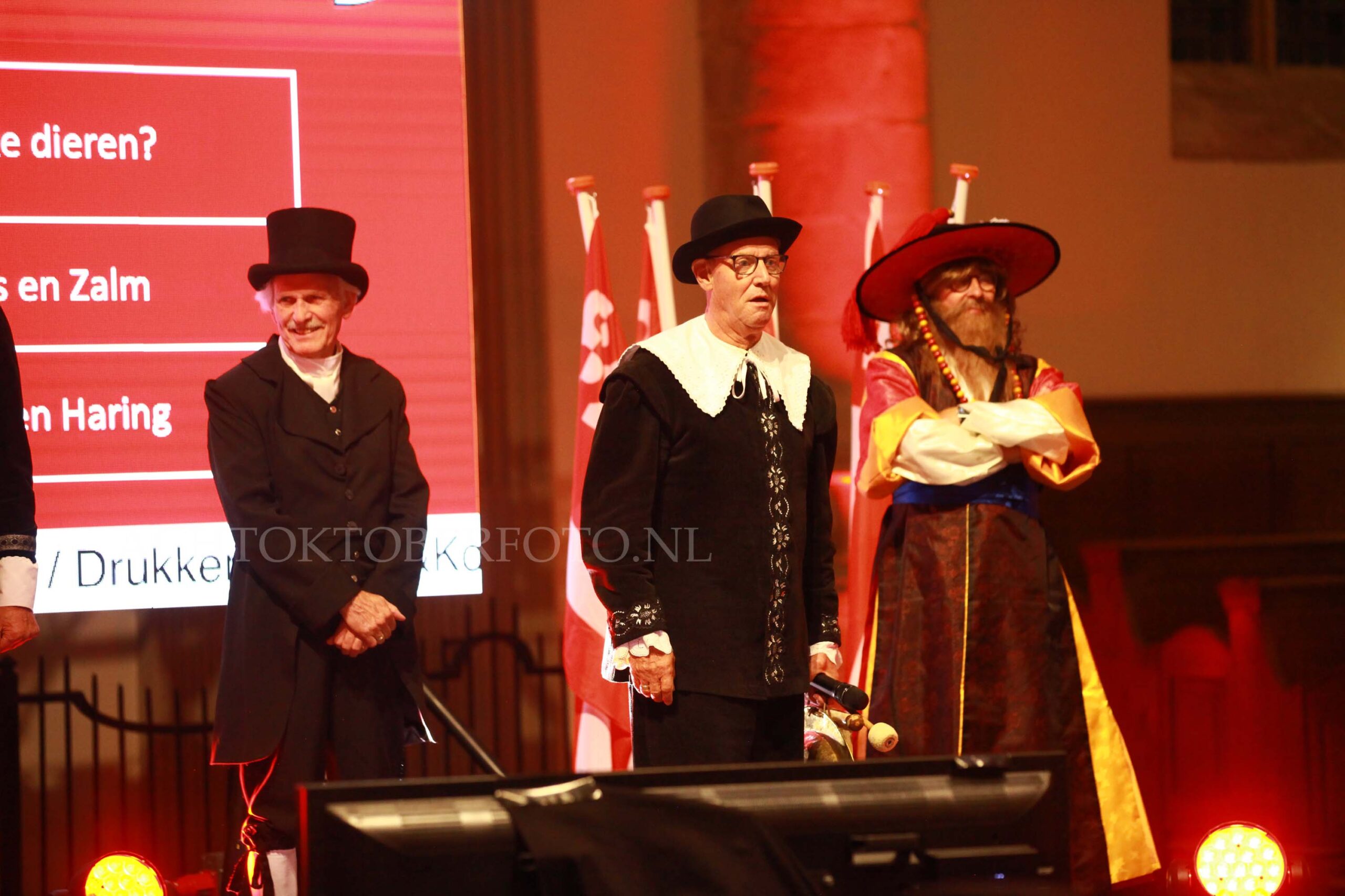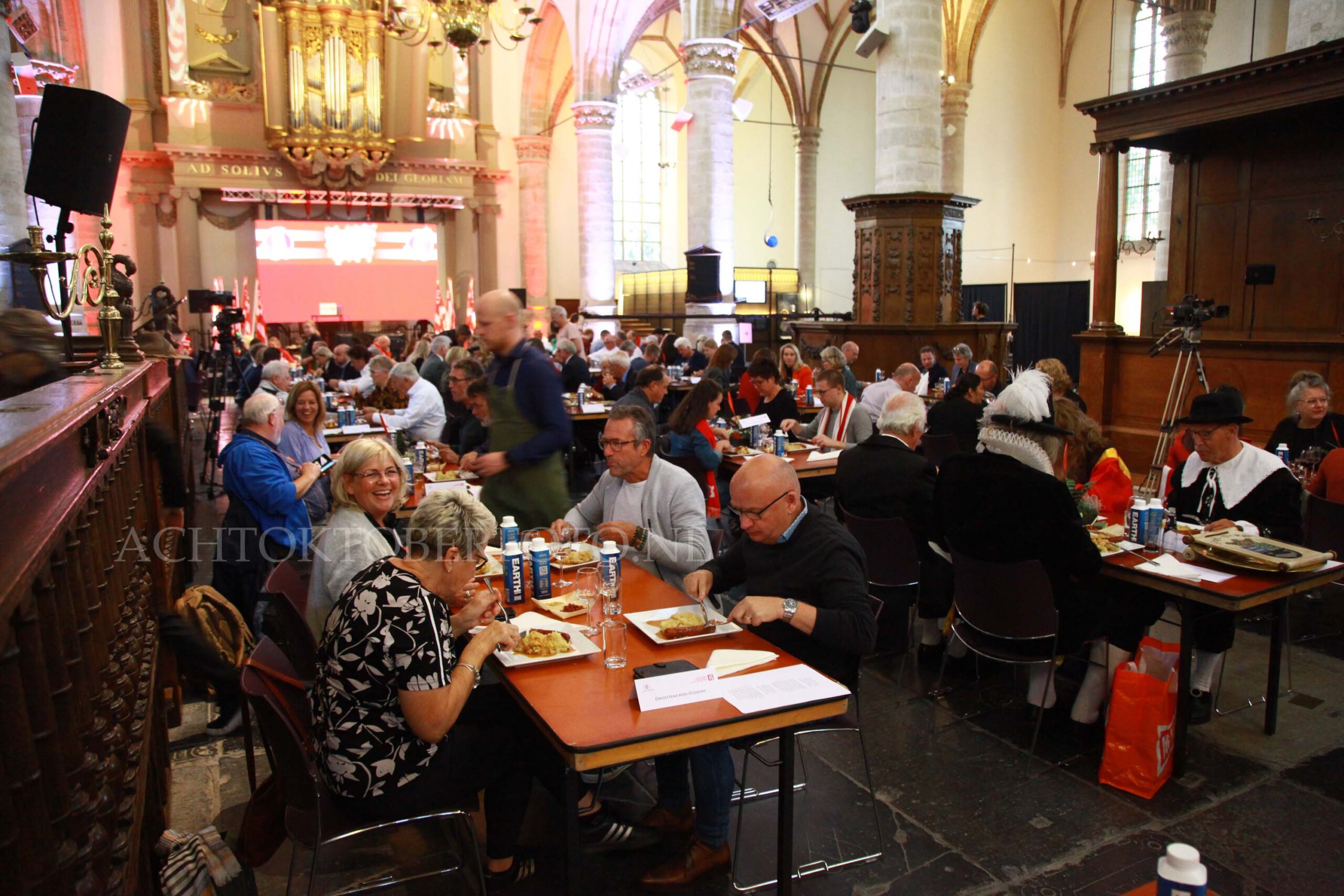 De pubquiz. Deze keer is de pubquiz gehouden in de Grote Kerk. Mensen konden zich inschrijven voor een tafel voor 4 en zo aanwezig zijn voor de pubquiz die ook direct live werd uigezonden. Onder het genot van de zuurkool maaltijd werd de Vrijwilligersprijs uitgereikt en konden we luisteren naar onze nieuwe Burgemeester die de Ontzetrede uitsprak.