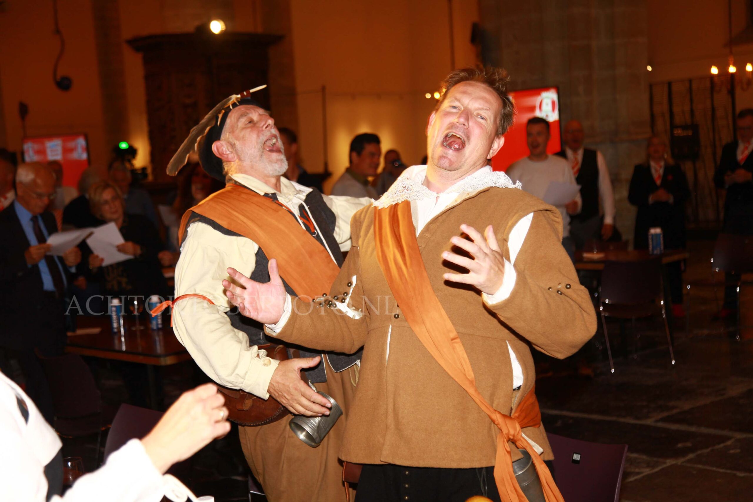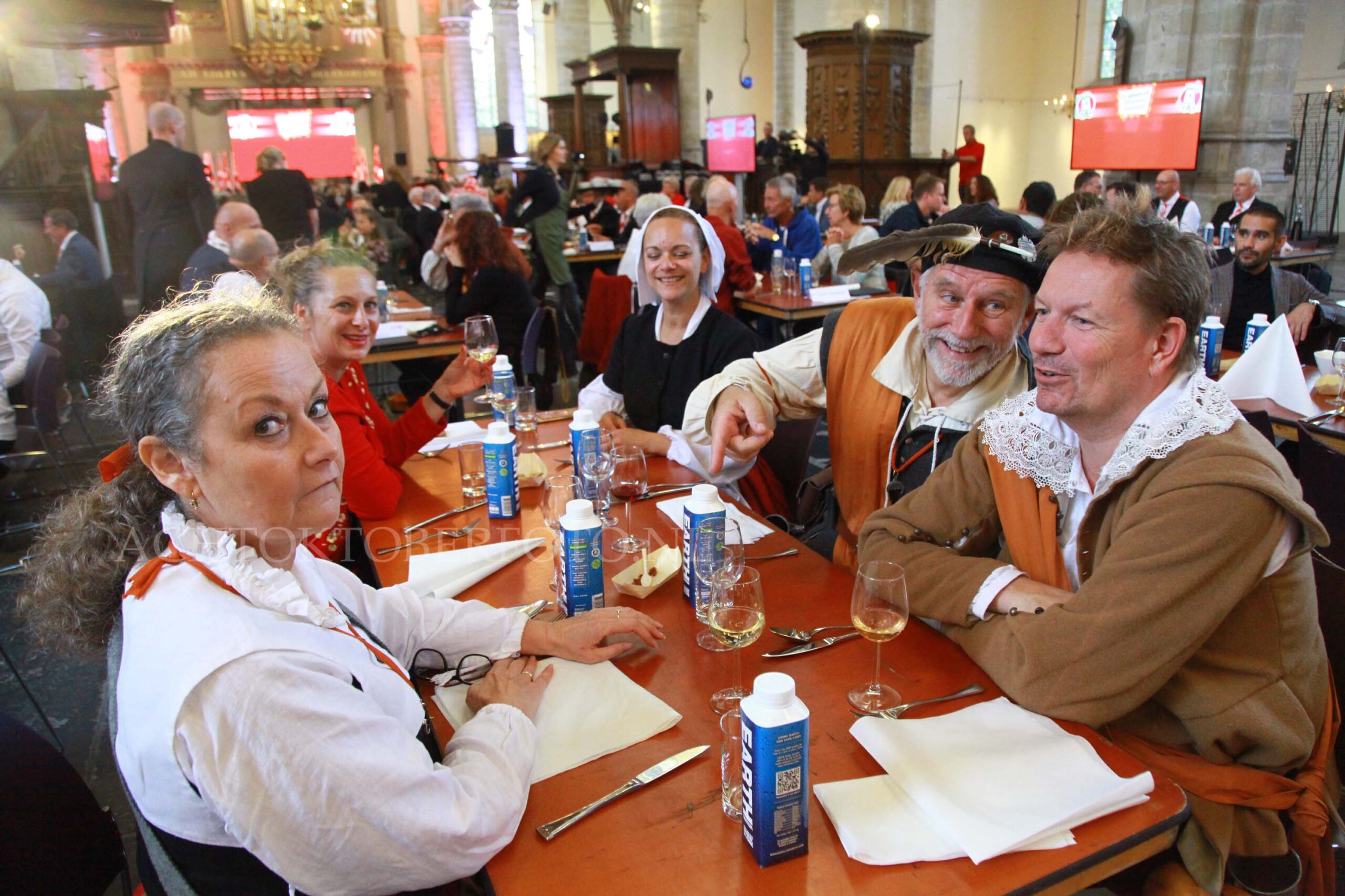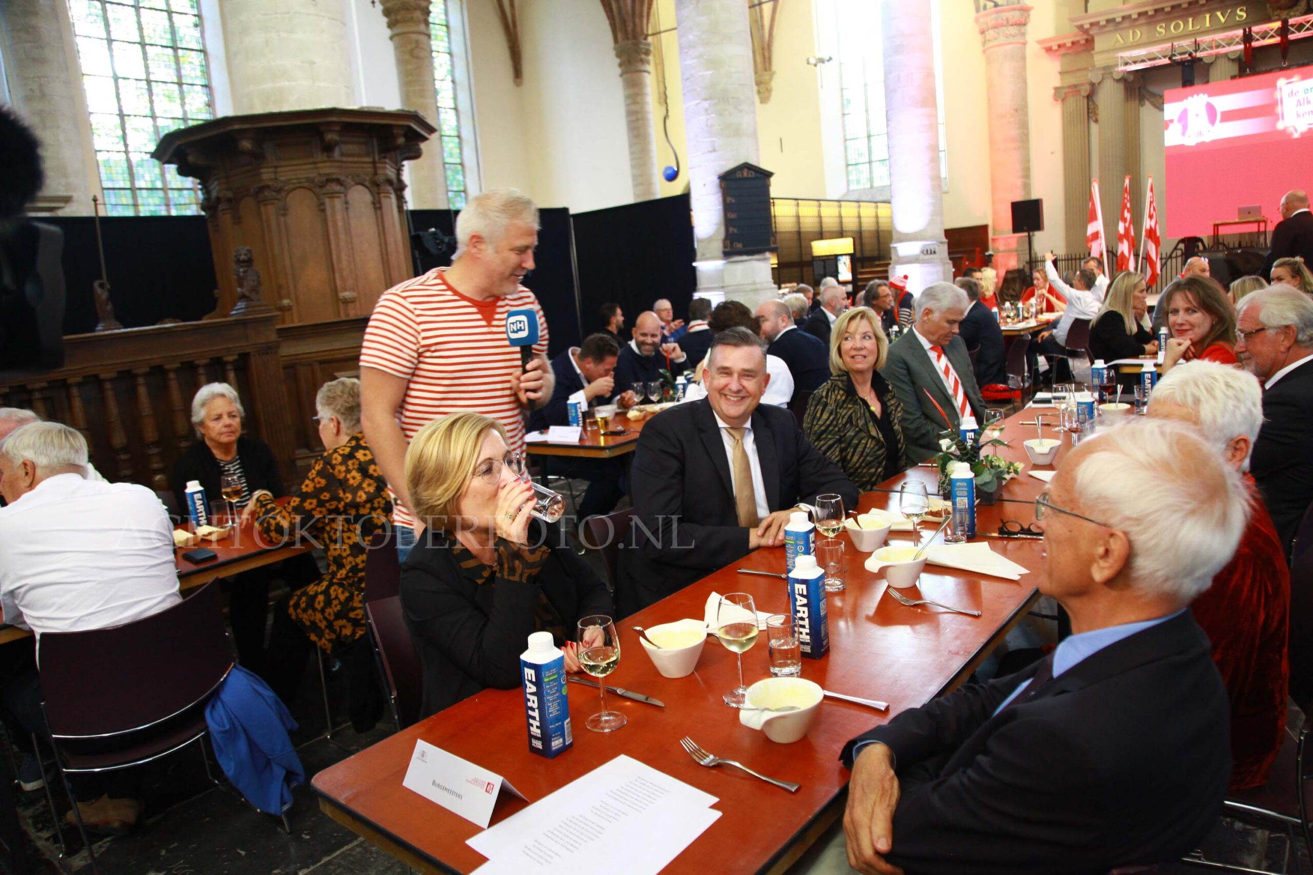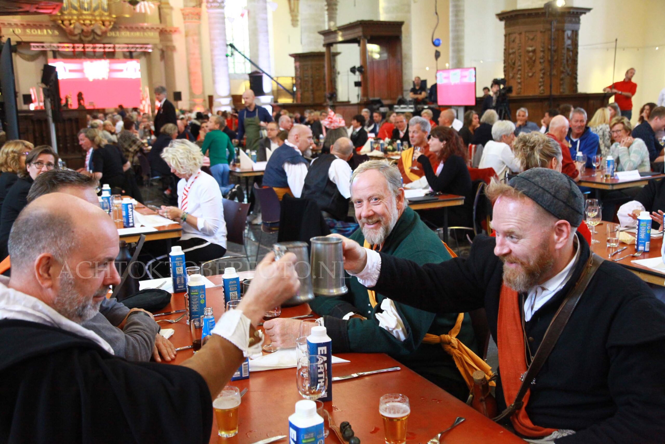 De pubquiz. Deze keer is de pubquiz gehouden in de Grote Kerk. Mensen konden zich inschrijven voor een tafel voor 4 en zo aanwezig zijn voor de pubquiz die ook direct live werd uigezonden. Onder het genot van de zuurkool maaltijd werd de Vrijwilligersprijs uitgereikt en konden we luisteren naar onze nieuwe Burgemeester die de Ontzetrede uitsprak.