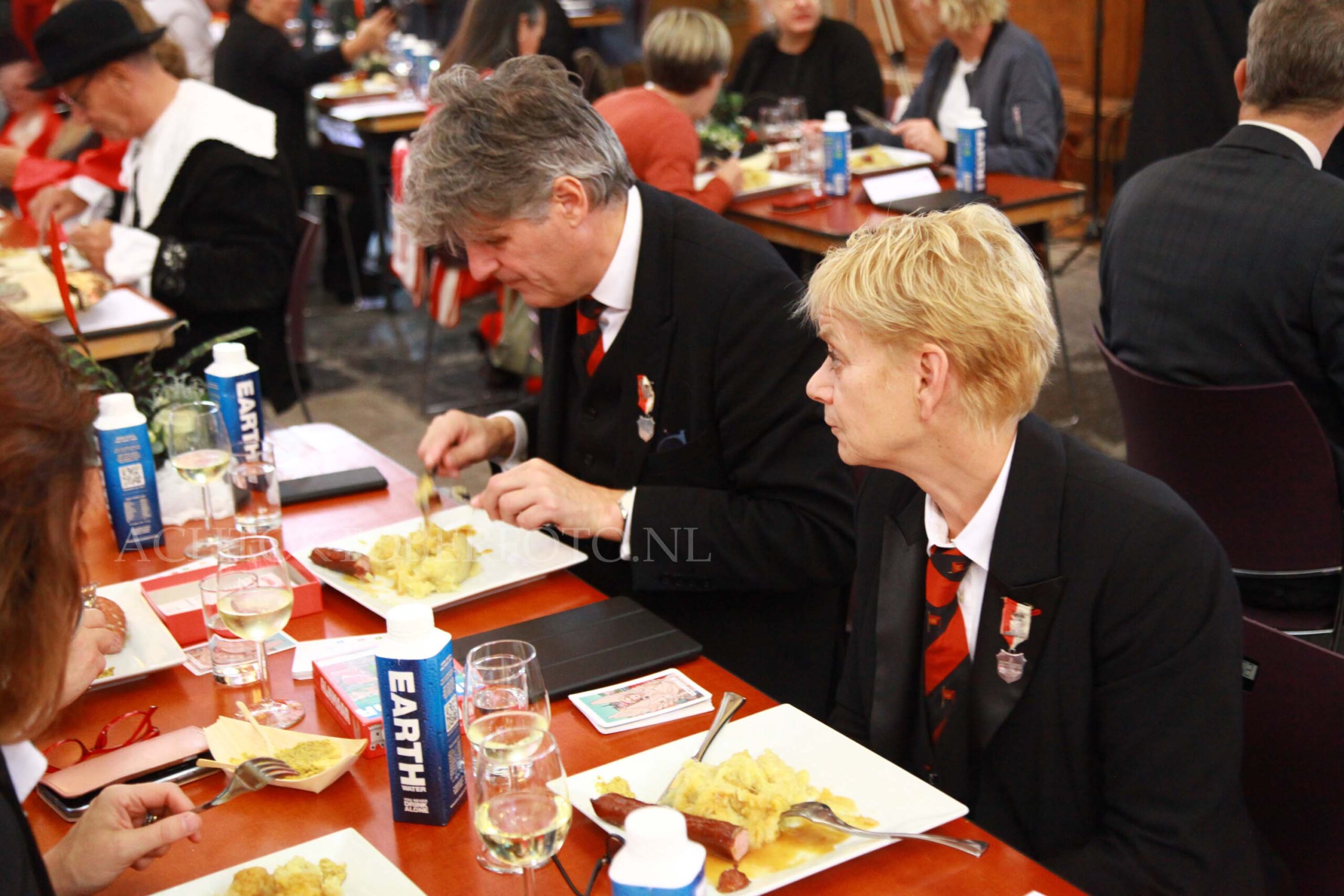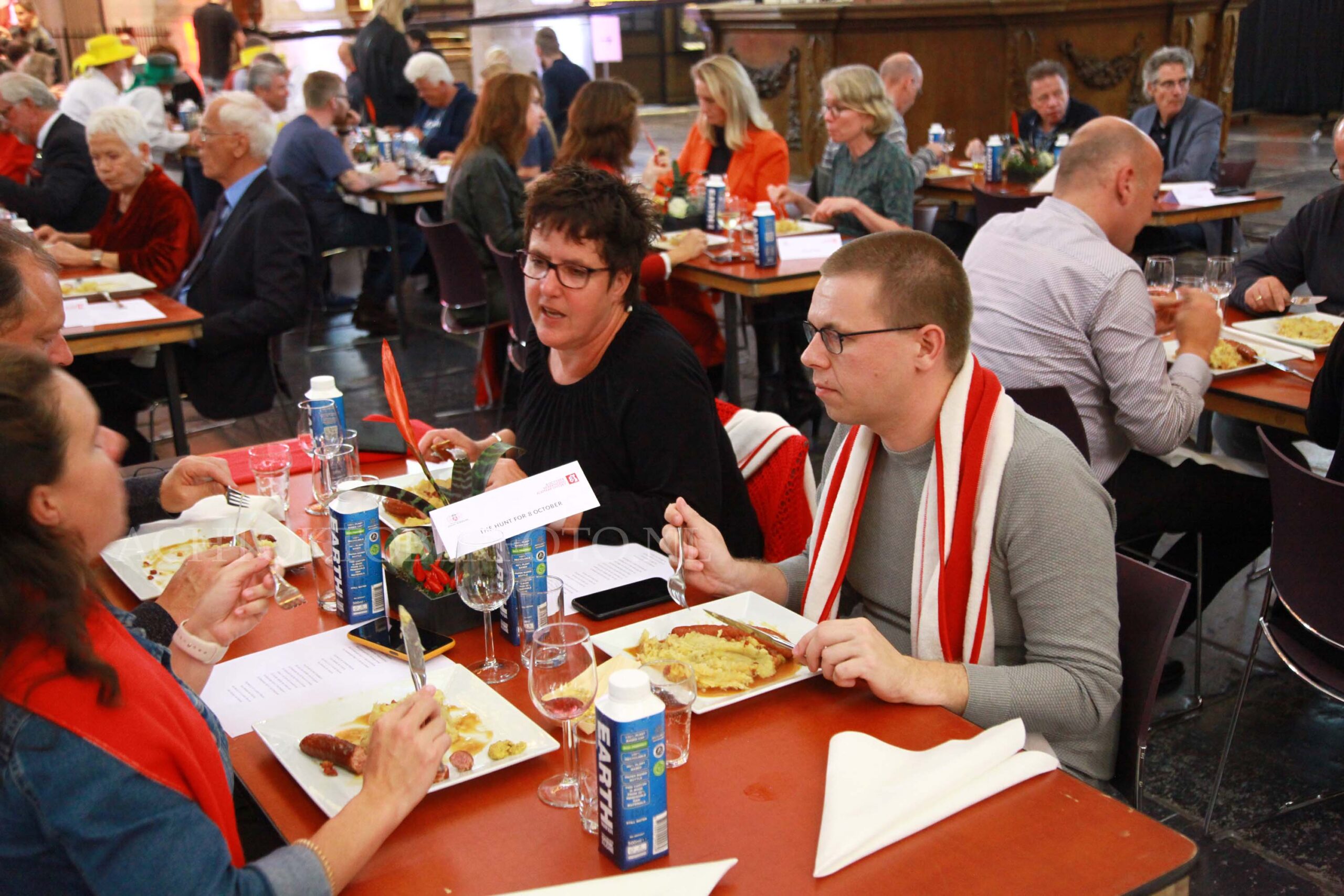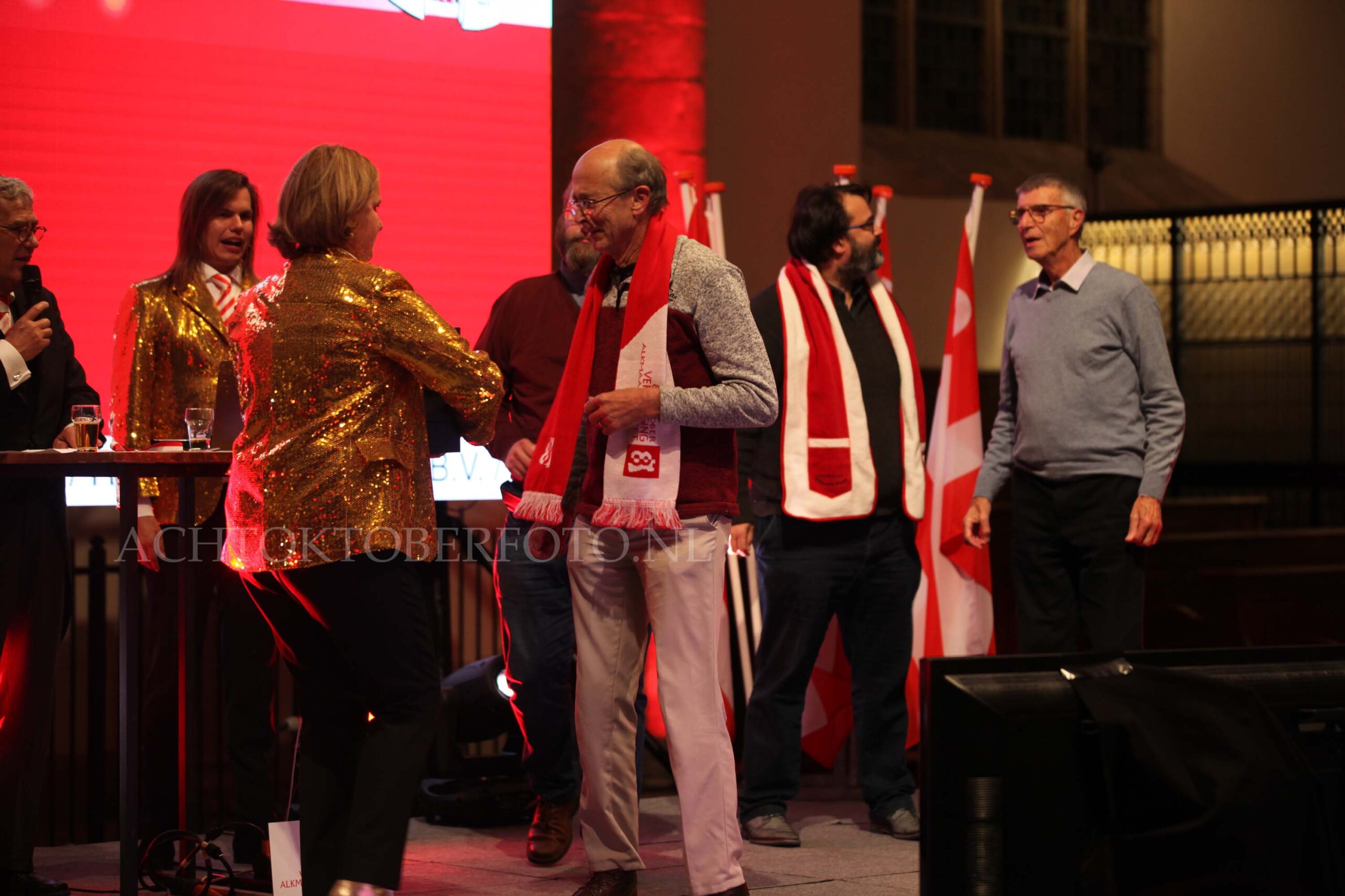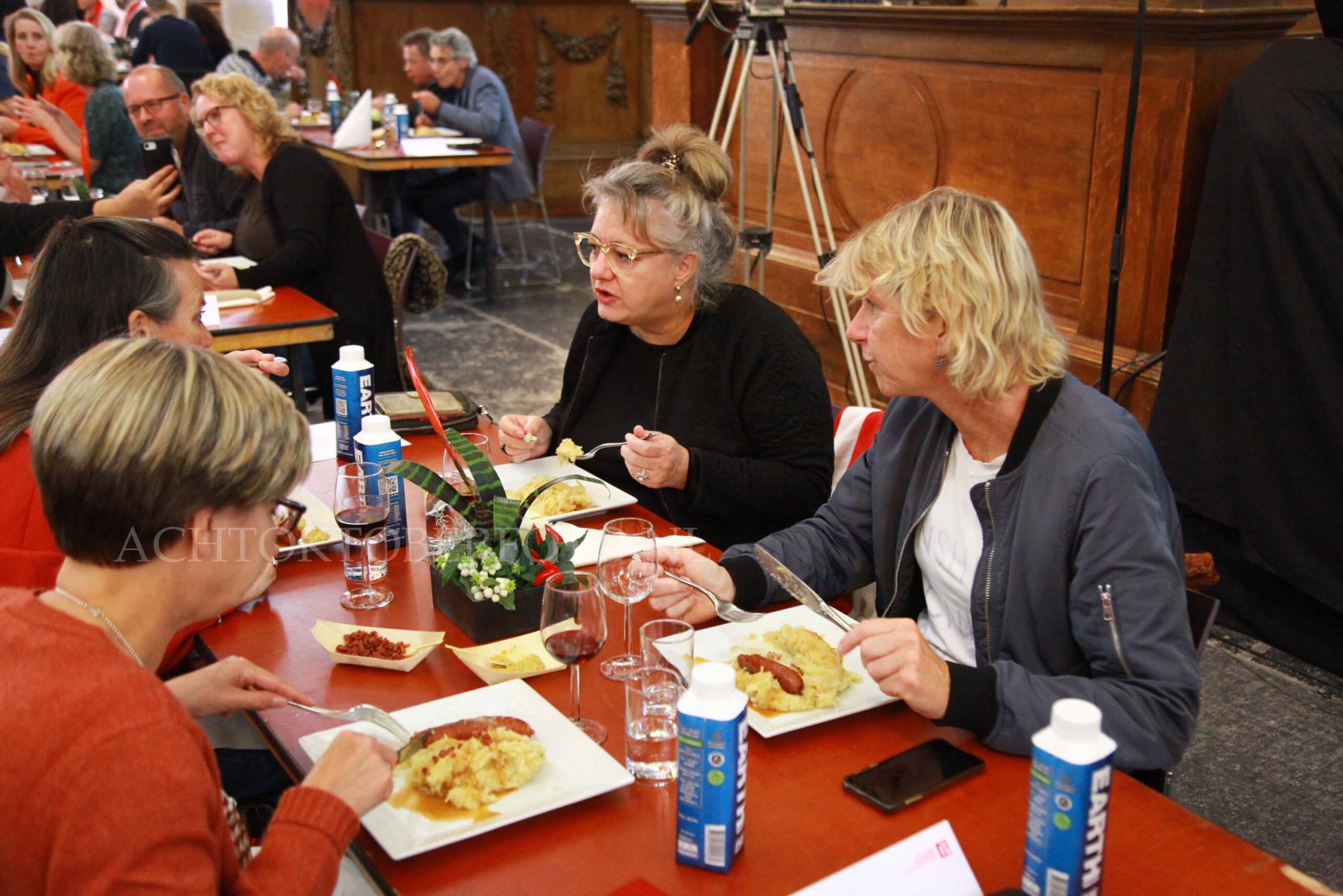 De pubquiz. Deze keer is de pubquiz gehouden in de Grote Kerk. Mensen konden zich inschrijven voor een tafel voor 4 en zo aanwezig zijn voor de pubquiz die ook direct live werd uigezonden. Onder het genot van de zuurkool maaltijd werd de Vrijwilligersprijs uitgereikt en konden we luisteren naar onze nieuwe Burgemeester die de Ontzetrede uitsprak.